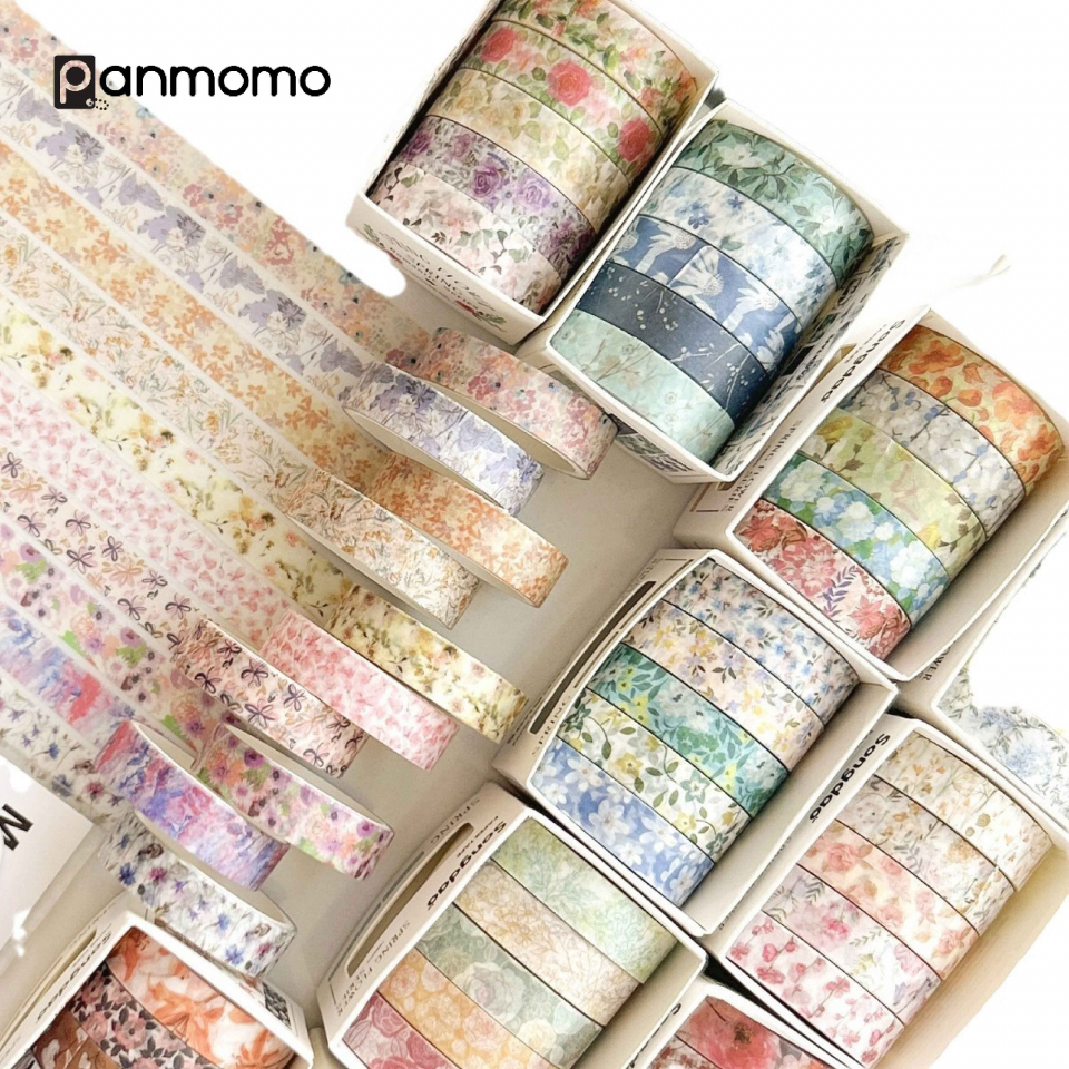 Ukuran: lebar pita 1 cm, panjang 2 meter per rol. 1set Isi: 5 rol. Bahan: washi tape, bisa disobek dan tidak meninggalkan bekas tempelan.