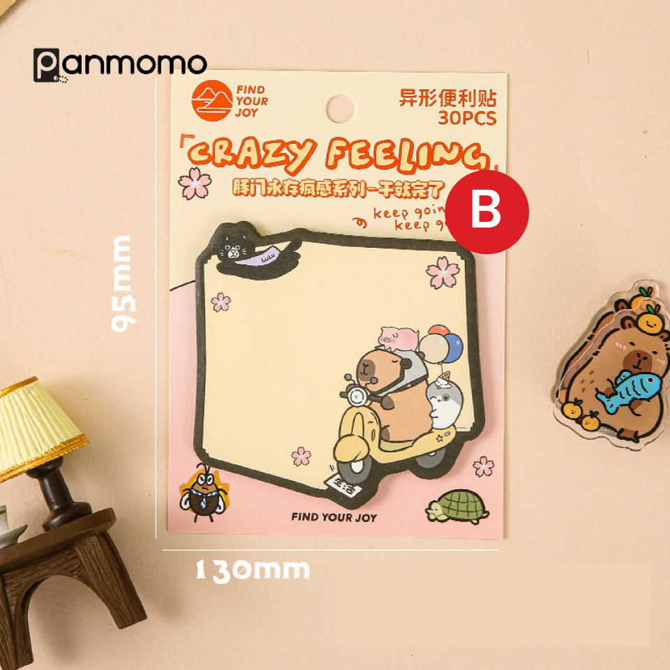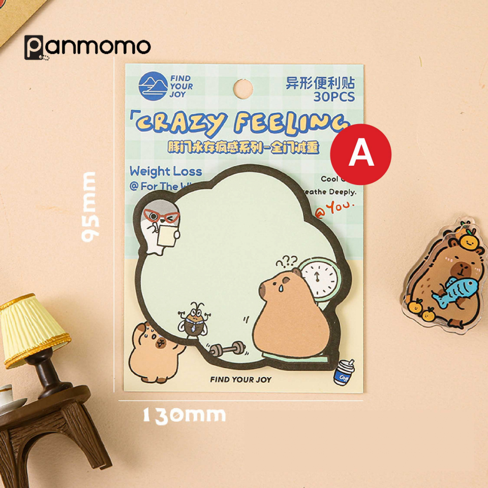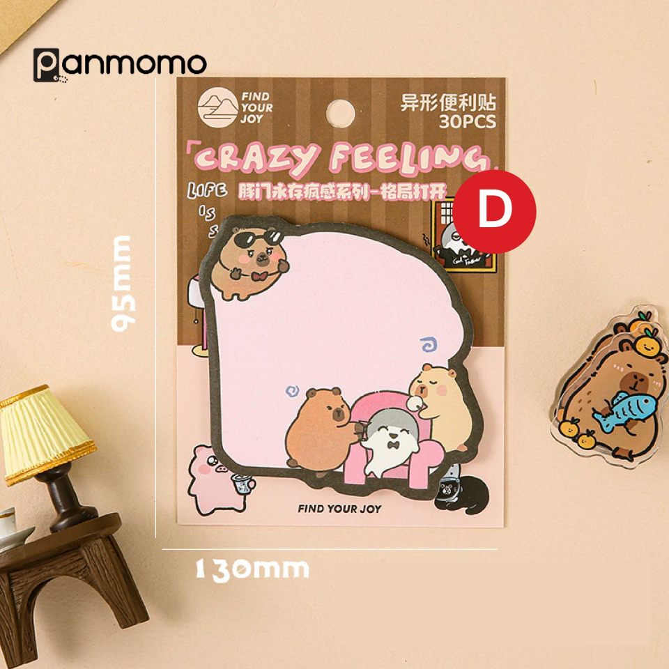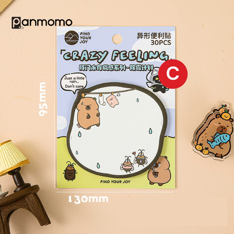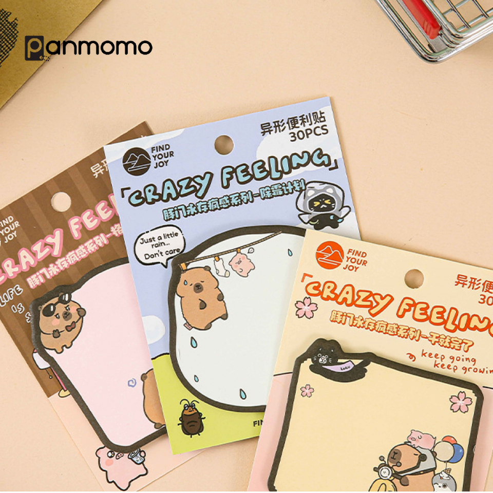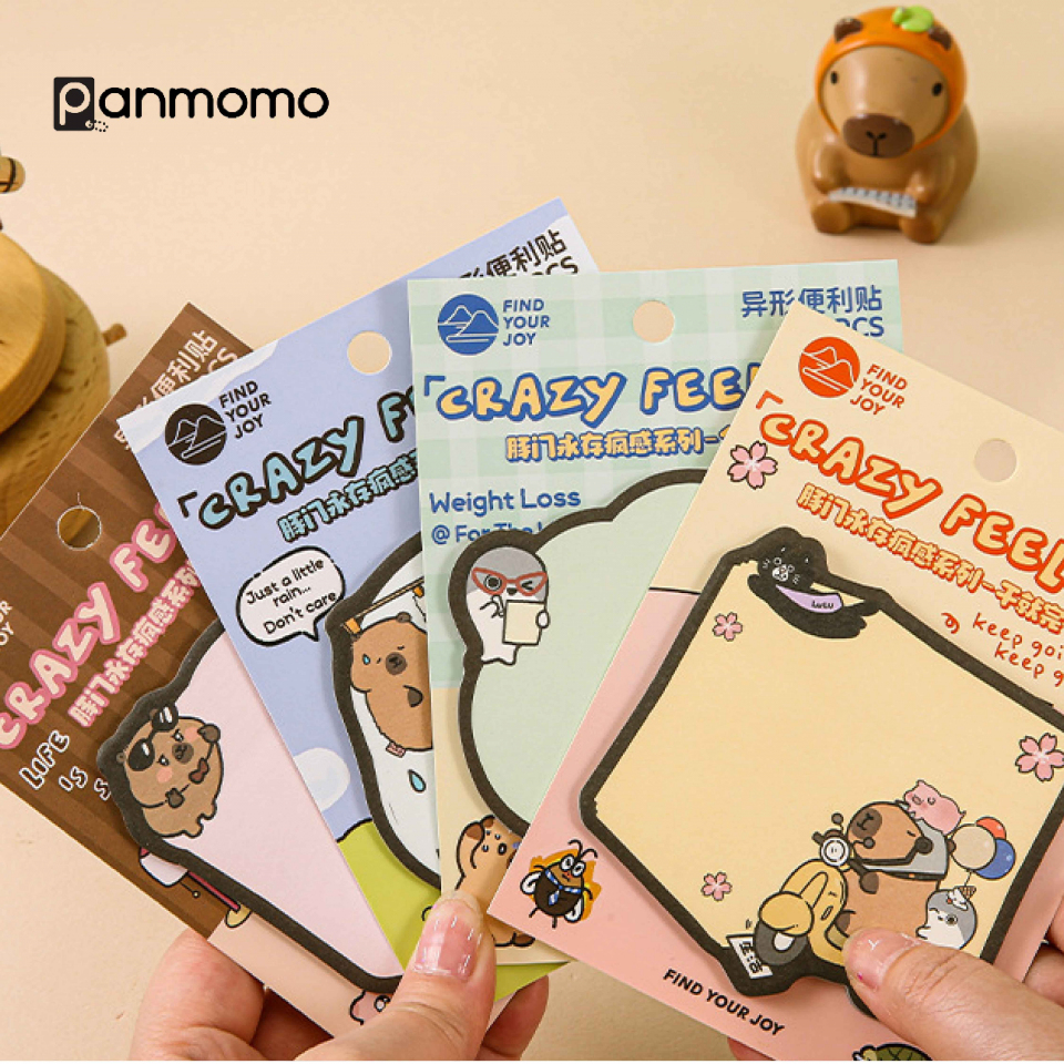 Tambahkan sentuhan imut dan menyenangkan pada catatan harianmu dengan Sticky Notes Crazy Feeling! Set ini berisi 4 desain berbeda bertema capybara yang menggemaskan dalam berbagai ekspresi dan aktivitas. Desainnya berwarna lembut dengan gaya ilustrasi lucu yang cocok untuk mempercantik planner, buku catatan, atau meja kerja.