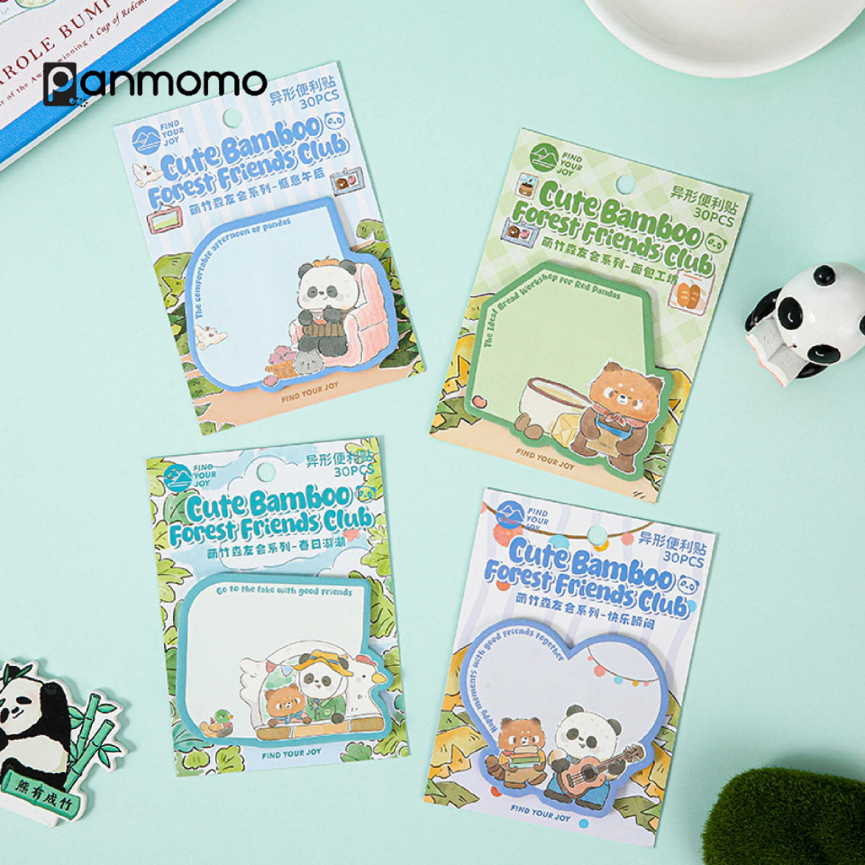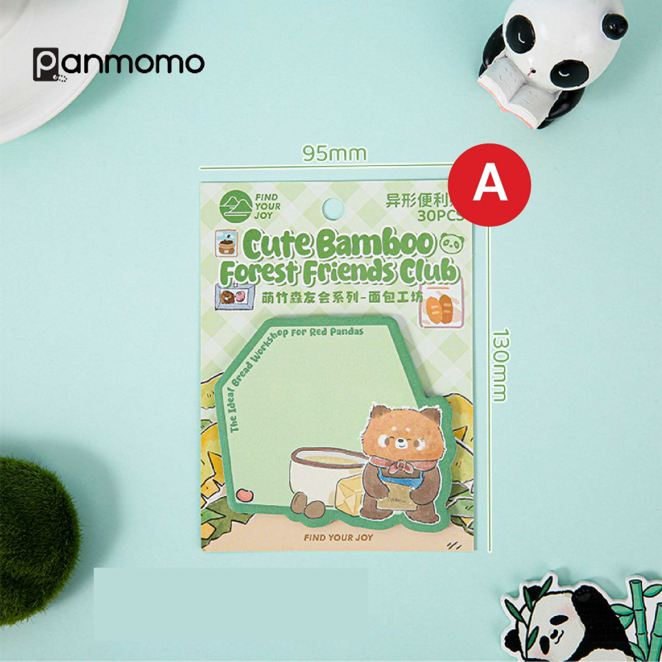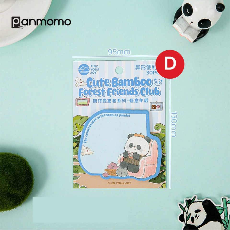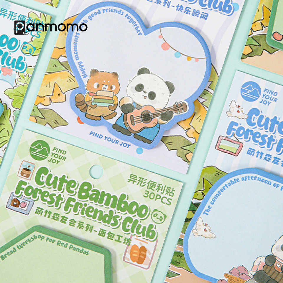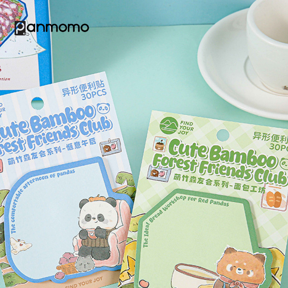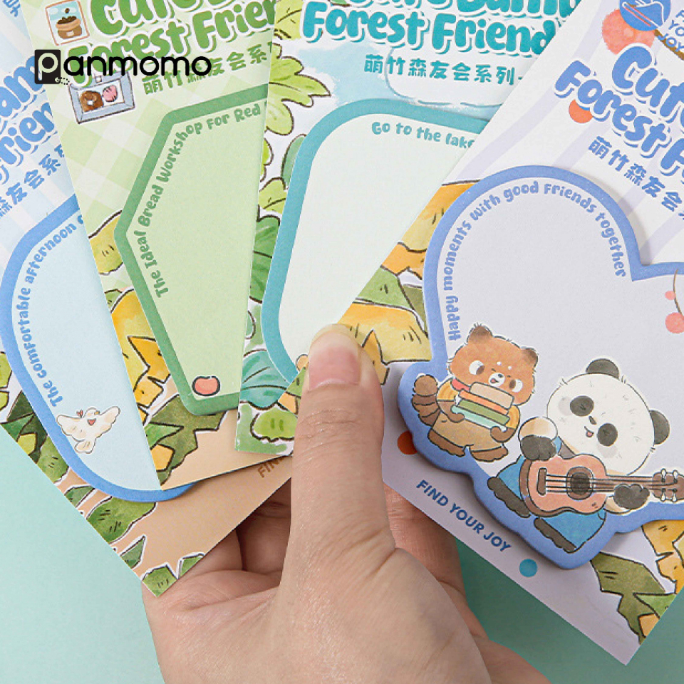 Buat catatanmu jadi lebih menyenangkan dengan Sticky Notes Cute Bamboo & Forest Friends Club! Set ini terdiri dari 4 desain berbeda yang menampilkan karakter hewan hutan seperti panda, rubah, dan beruang dalam gaya ilustrasi yang lucu dan penuh warna. Kertasnya halus, mudah ditempel dan dilepas tanpa meninggalkan bekas, sempurna untuk digunakan di buku catatan, planner, atau meja kerja.