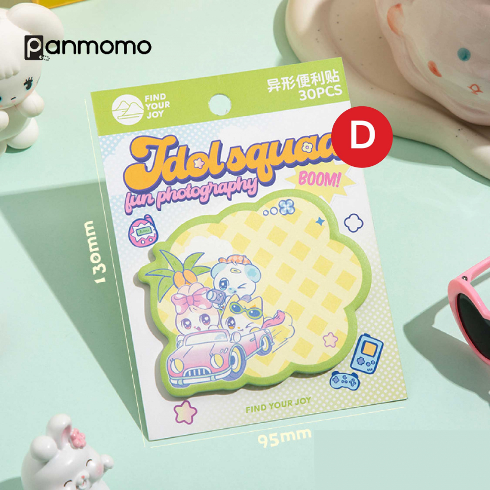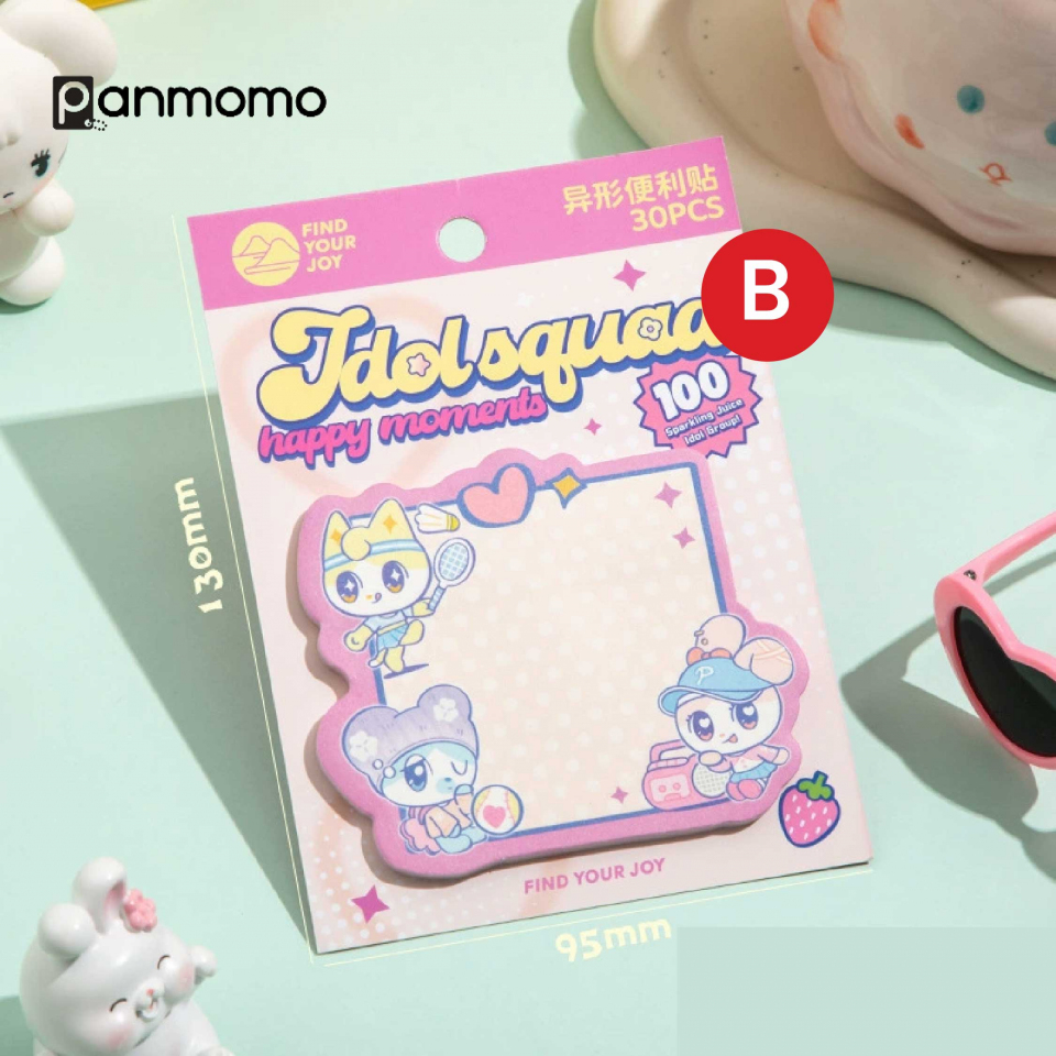 Tambahkan sentuhan imut pada catatan harianmu dengan Sticky Notes Idol Squad! Set ini berisi 4 desain berbeda dengan ilustrasi karakter lucu dan warna pastel yang menenangkan. Terbuat dari kertas berkualitas yang mudah ditempel dan dilepas tanpa meninggalkan bekas, cocok untuk mencatat pesan singkat, pengingat, atau hiasan di buku dan planner.