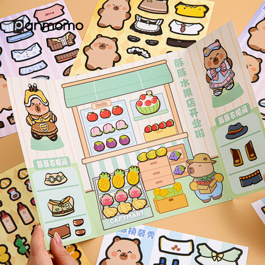 Hadirkan keseruan bermain sambil berimajinasi dengan Set Stiker Dress-Up Capybara yang penuh karakter lucu dan warna cerah! Produk ini menampilkan capybara dan teman-temannya dalam berbagai tema profesi—seperti chef, kasir, pegawai toko, hingga pekerja barbeque—lengkap dengan baju, aksesoris, dan perlengkapan yang dapat ditempel dan dilepas sesuka hati.