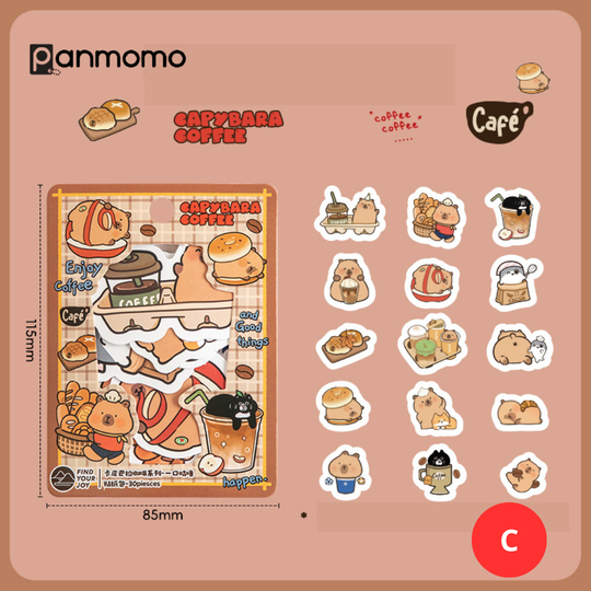 Ukuran stiker bervariasi antara ~ 1.5 - 4 cm. Isi: 30 lembar dengan 15 desain berbeda (@ 2 lembar) Bahan: stiker kertas.