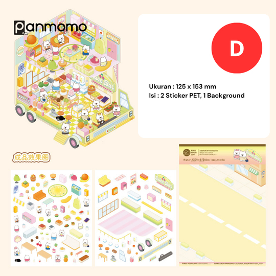 Hadirkan dunia mini yang penuh warna dan imajinasi dengan Mobile Cabin Series DIY Sticker! Set ini berisi berbagai lembar stiker bertema ruangan dan aktivitas sehari-hari, lengkap dengan karakter-karakter hewan kecil yang menggemaskan. Setiap lembar menghadirkan suasana berbeda—seperti dapur, ruang makan, kamar tidur, area bermain, toko, hingga lingkungan luar ruangan—yang dapat ditata sesuka hati