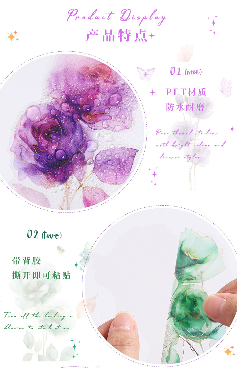 Hadirkan sentuhan elegan dalam dekorasi journaling mu dengan Rainbow Rose Diary Deco Sticker.