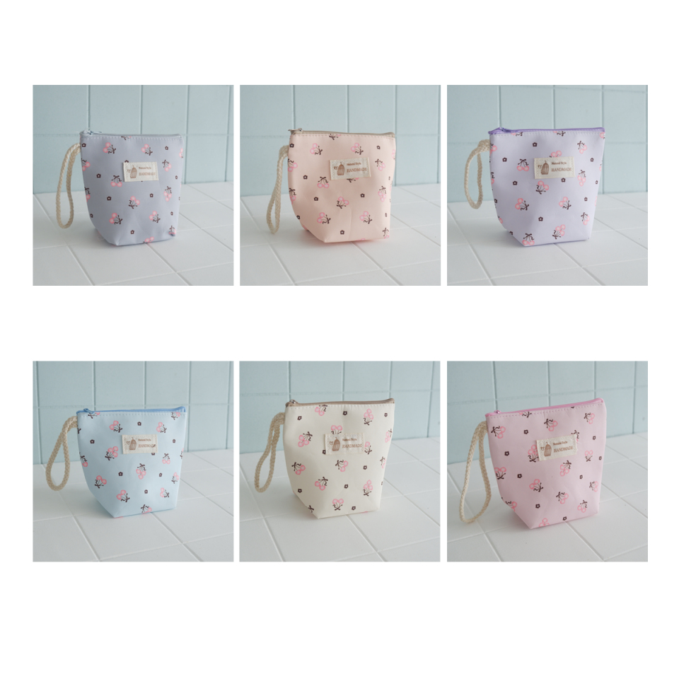 Pouch cantik dengan motif bunga pastel yang manis, cocok untuk menyimpan kosmetik, perlengkapan mandi, atau aksesoris kecil. Terbuat dari bahan berkualitas yang ringan, tahan lama, dan mudah dibersihkan. Dilengkapi dengan resleting halus serta tali pegangan dari bahan tali rami yang nyaman. Tersedia dalam berbagai pilihan warna lembut seperti biru, pink, ungu, dan krem, membuatnya tampak elegan sekaligus menggemaskan.