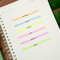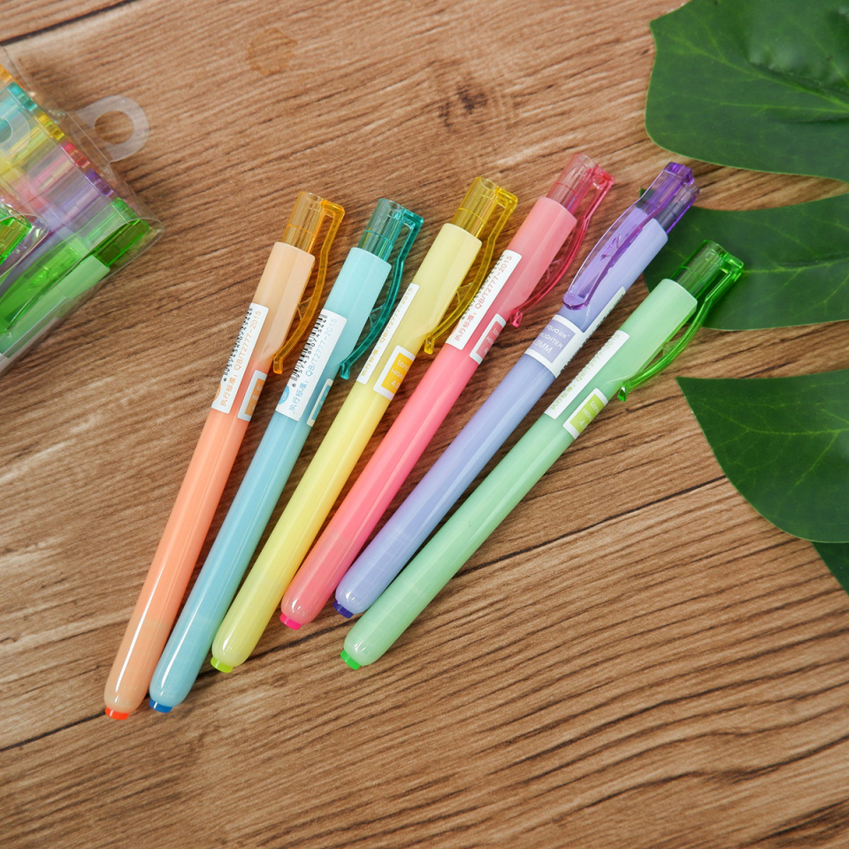 Highlighter berbentuk pena ini berisi 6 pena dengan warna-warni berbeda. Penggunaannya seperti pena biasa, dengan tutup kecil di bagian ujung agar tidak mudah kering.
