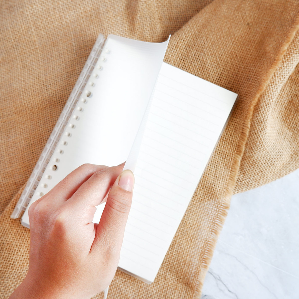 Bisa di-refill kertas loose leaf biasa (20 atau 26 ring).
