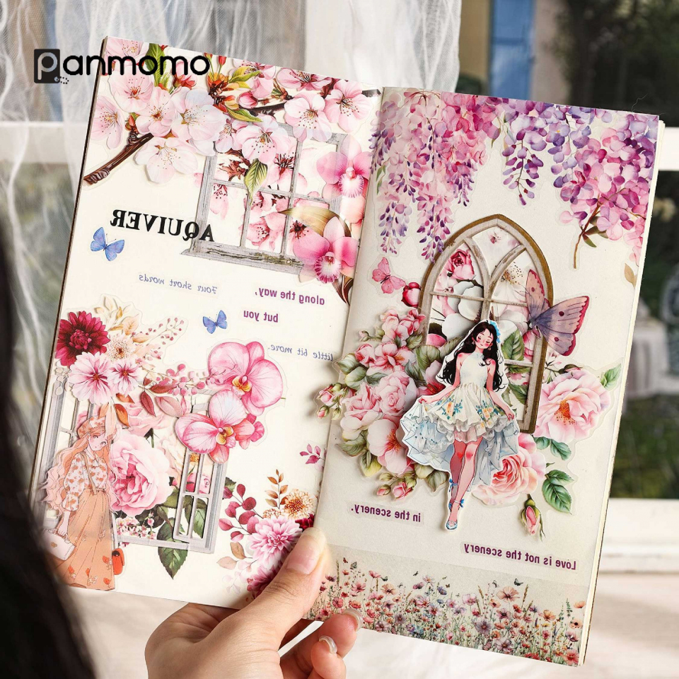 Dengan warna lembut serta detail bunga yang mempesona, stiker ini akan menjadi teman terbaik Anda untuk mempercantik setiap kreasi.