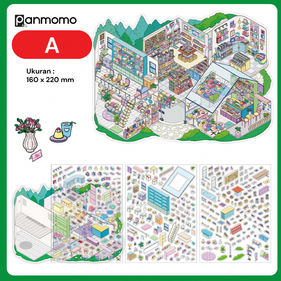 Ukuran: 160 x 220 mm. Isi: 1 background dan 3 lembar sticker Bahan: plastik PET.