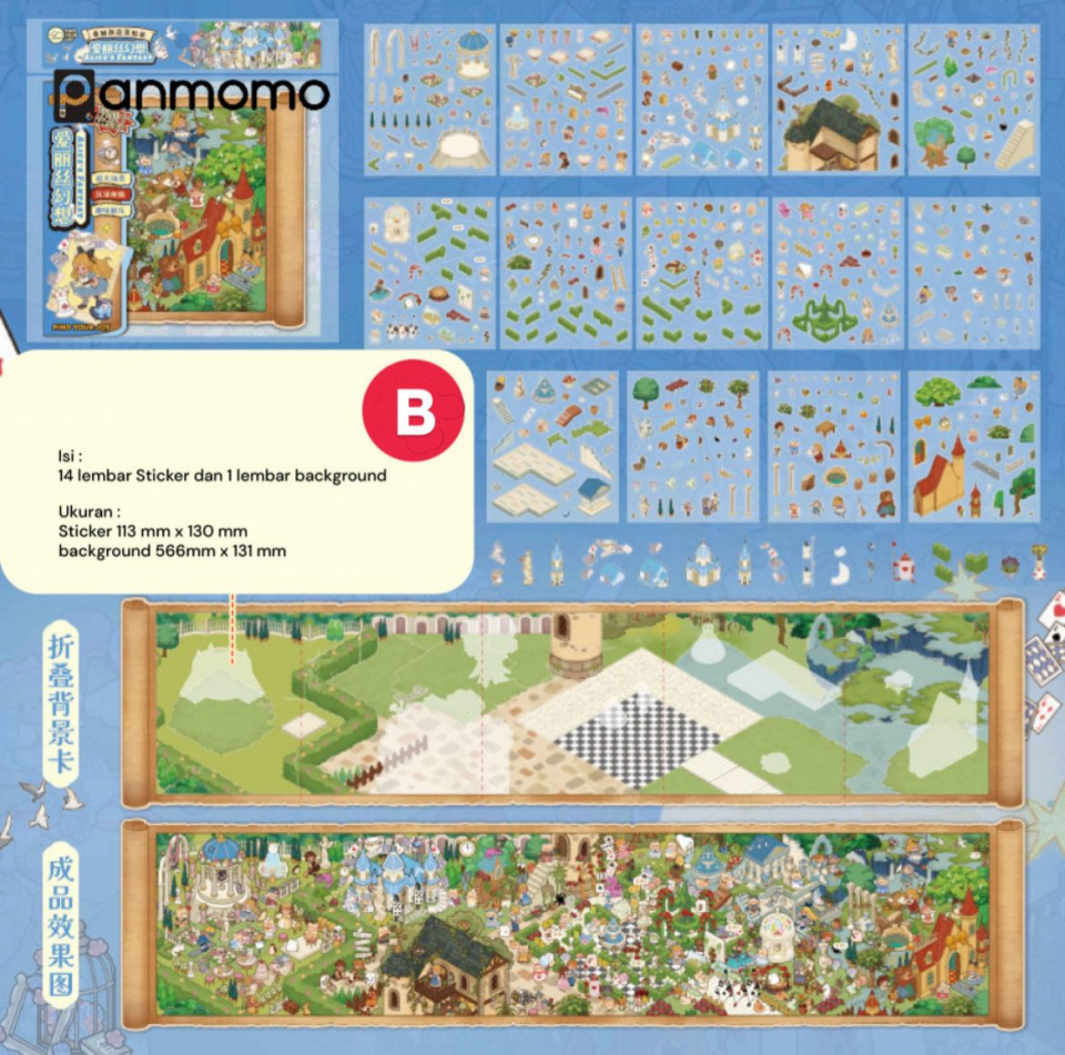 Isi : 1 lembar kertas background dan 14 lembar stiker DIY Ukuran Background: 566 mm x 131 mm (bisa di lipat) Ukuran Sticker: 113 mm x 130 mm