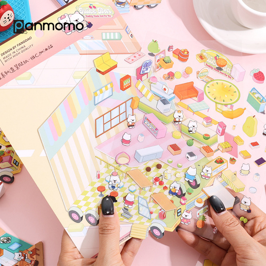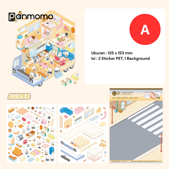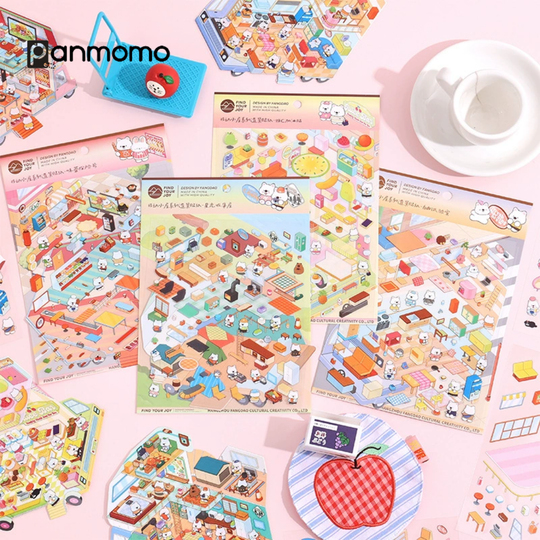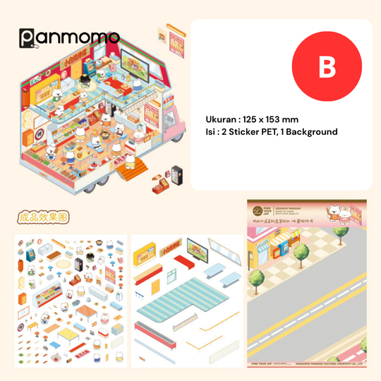 Hadirkan dunia mini yang penuh warna dan imajinasi dengan Mobile Cabin Series DIY Sticker! Set ini berisi berbagai lembar stiker bertema ruangan dan aktivitas sehari-hari, lengkap dengan karakter-karakter hewan kecil yang menggemaskan. Setiap lembar menghadirkan suasana berbeda—seperti dapur, ruang makan, kamar tidur, area bermain, toko, hingga lingkungan luar ruangan—yang dapat ditata sesuka hati