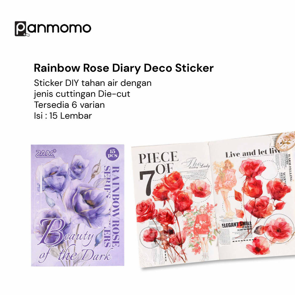 Hadirkan sentuhan elegan dalam dekorasi journaling mu dengan Rainbow Rose Diary Deco Sticker.